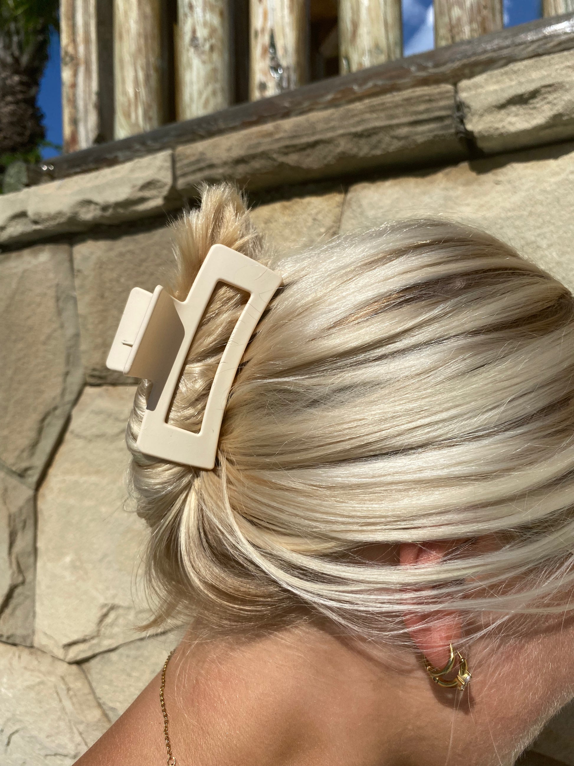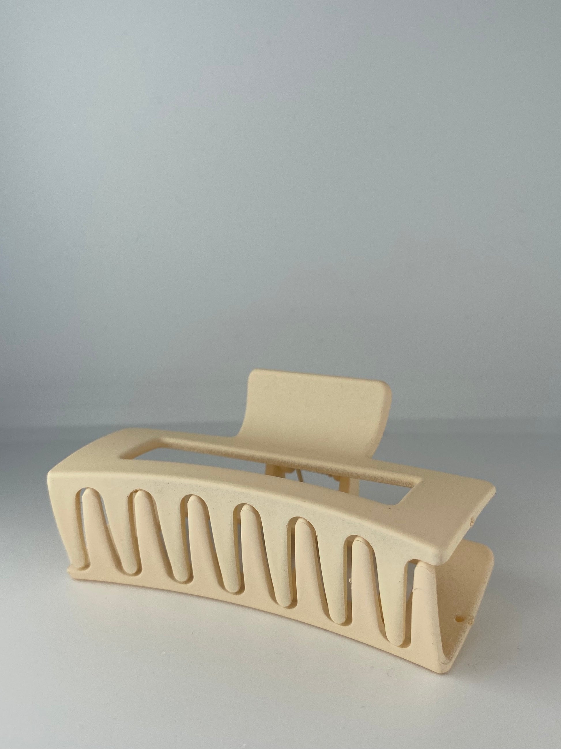 Die Haarklammer BINE - in einem schönen Cremeton - hat eine matte Oberfläche. Die Haarklammer ist rechteckig und besonders gut lässt sich die Haarklammer mit schlichten Outfits kombinieren.