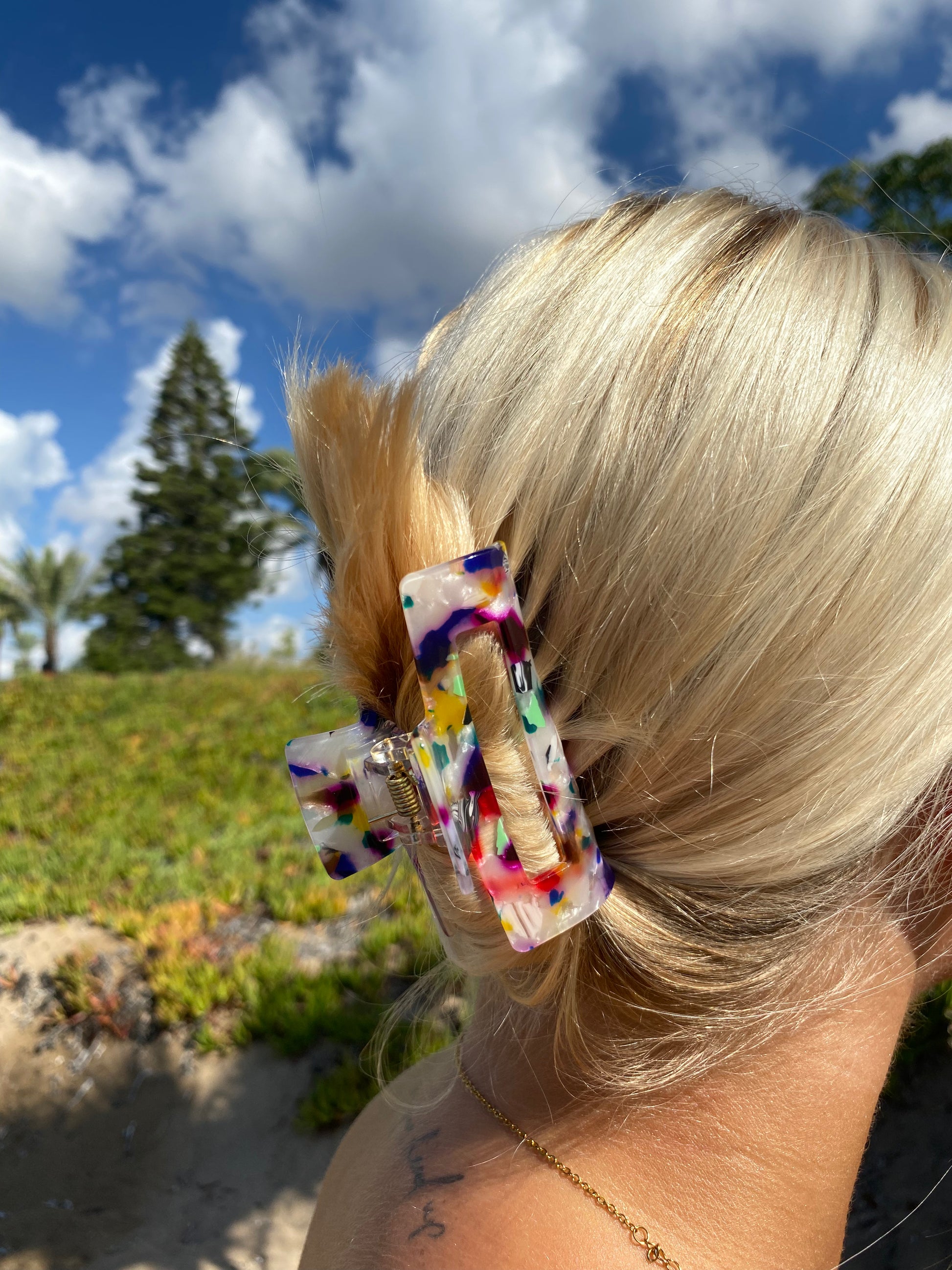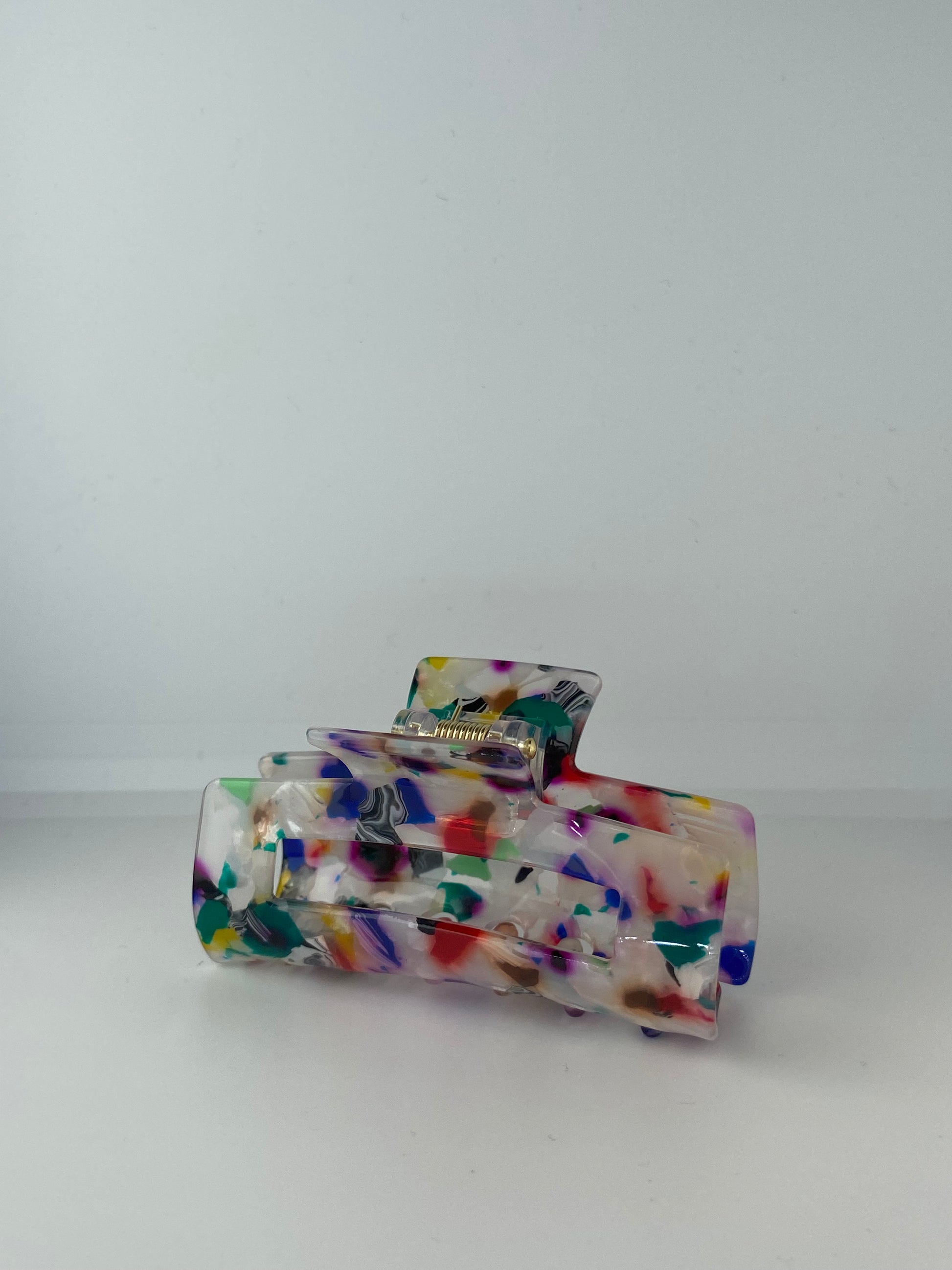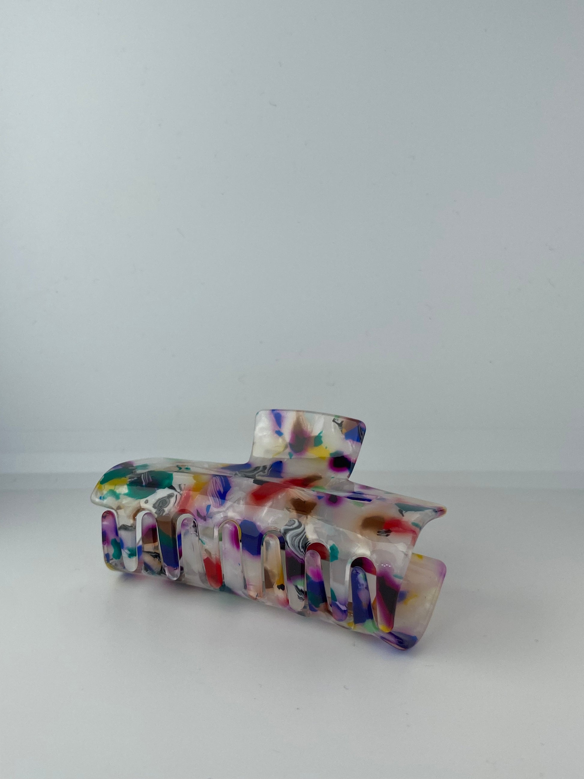 Diese französische Haarklammer HANNA hat die perfekte Größe für alle Haartypen und Frisuren. Sie hält die Haare fest zusammen und mit ihr lassen sich alle möglichen Haarstyles zaubern. Die Klammer ist mehrfarbig, bunt gepunktet und schimmert leicht im Licht.