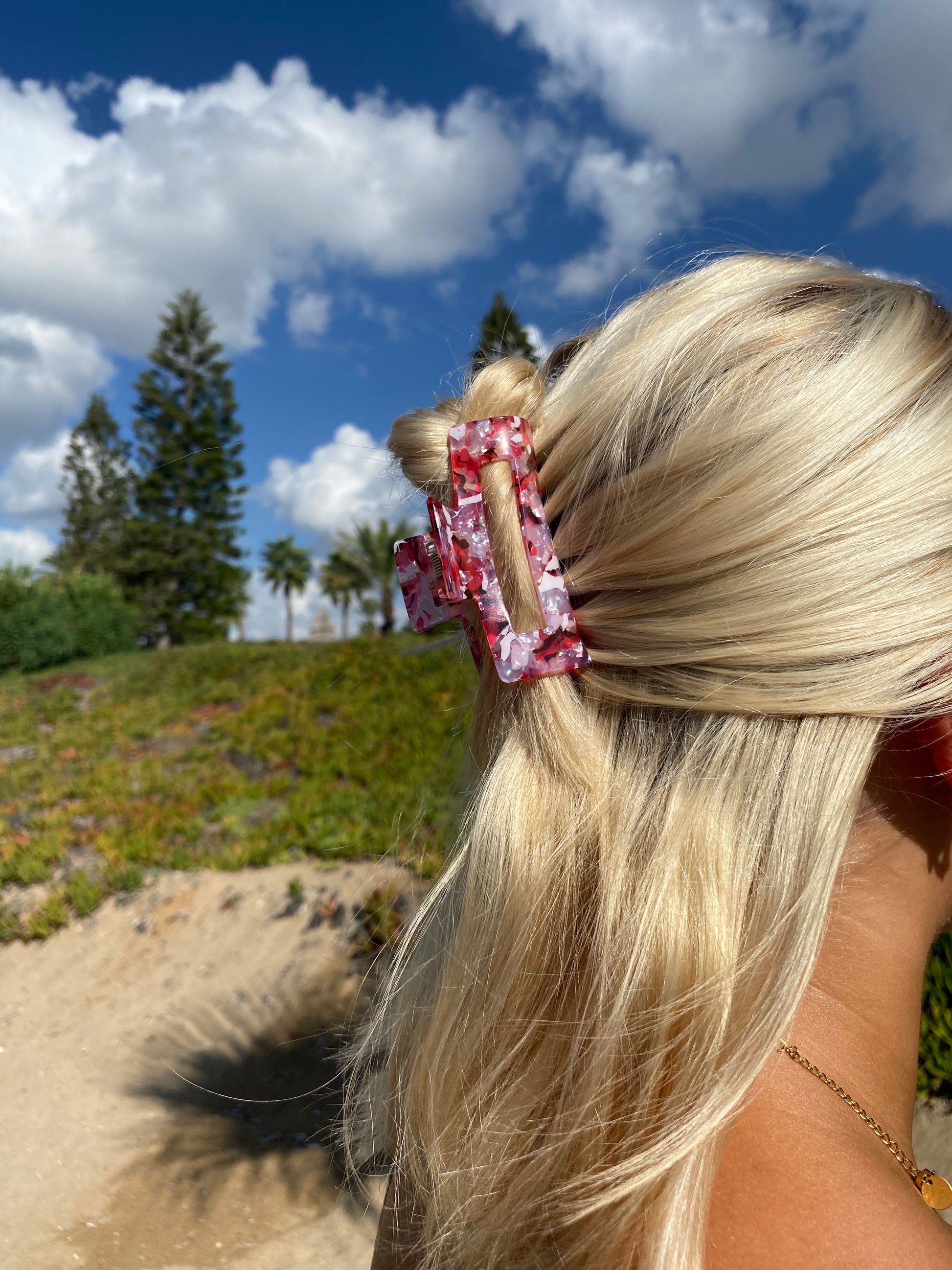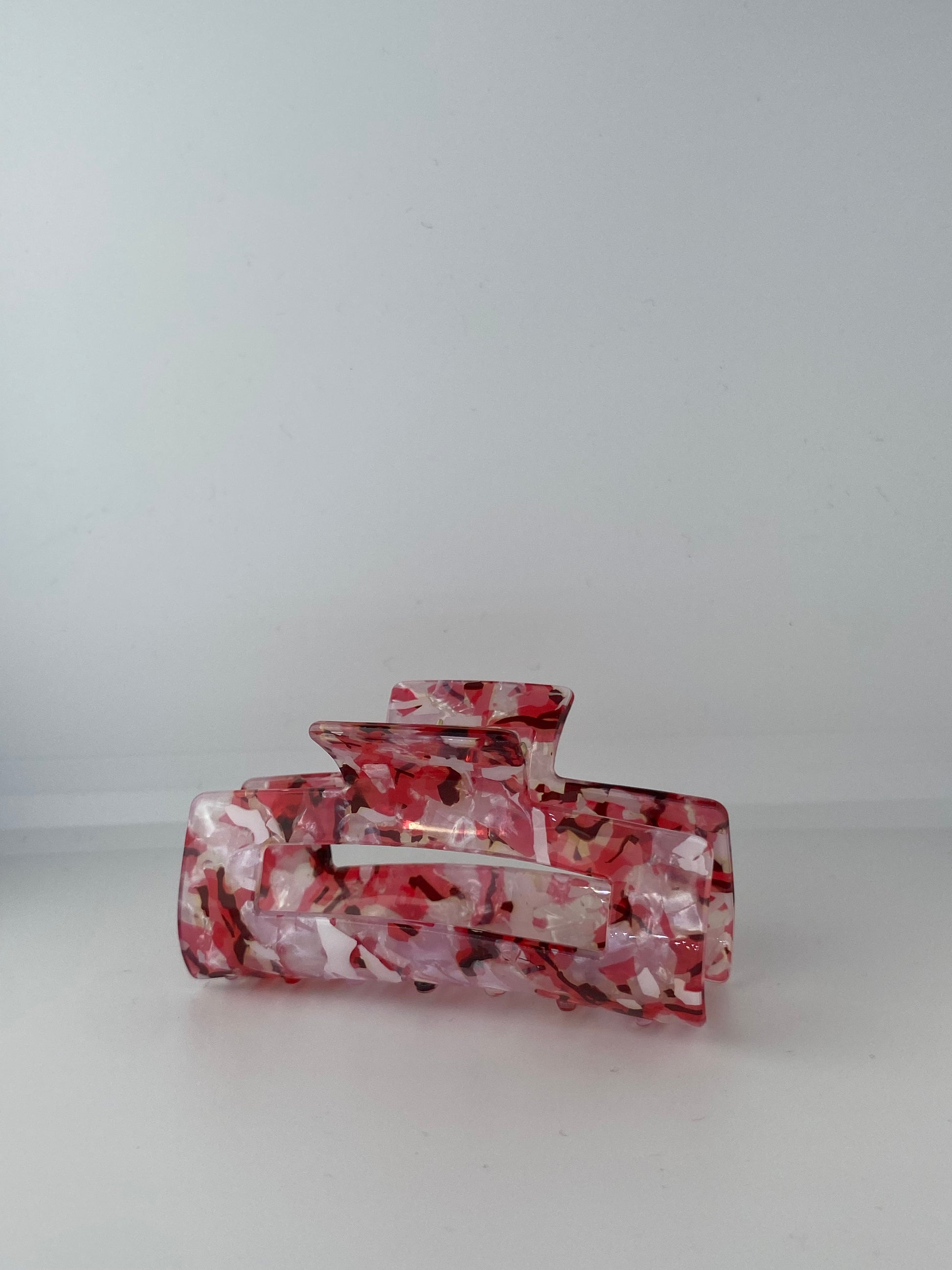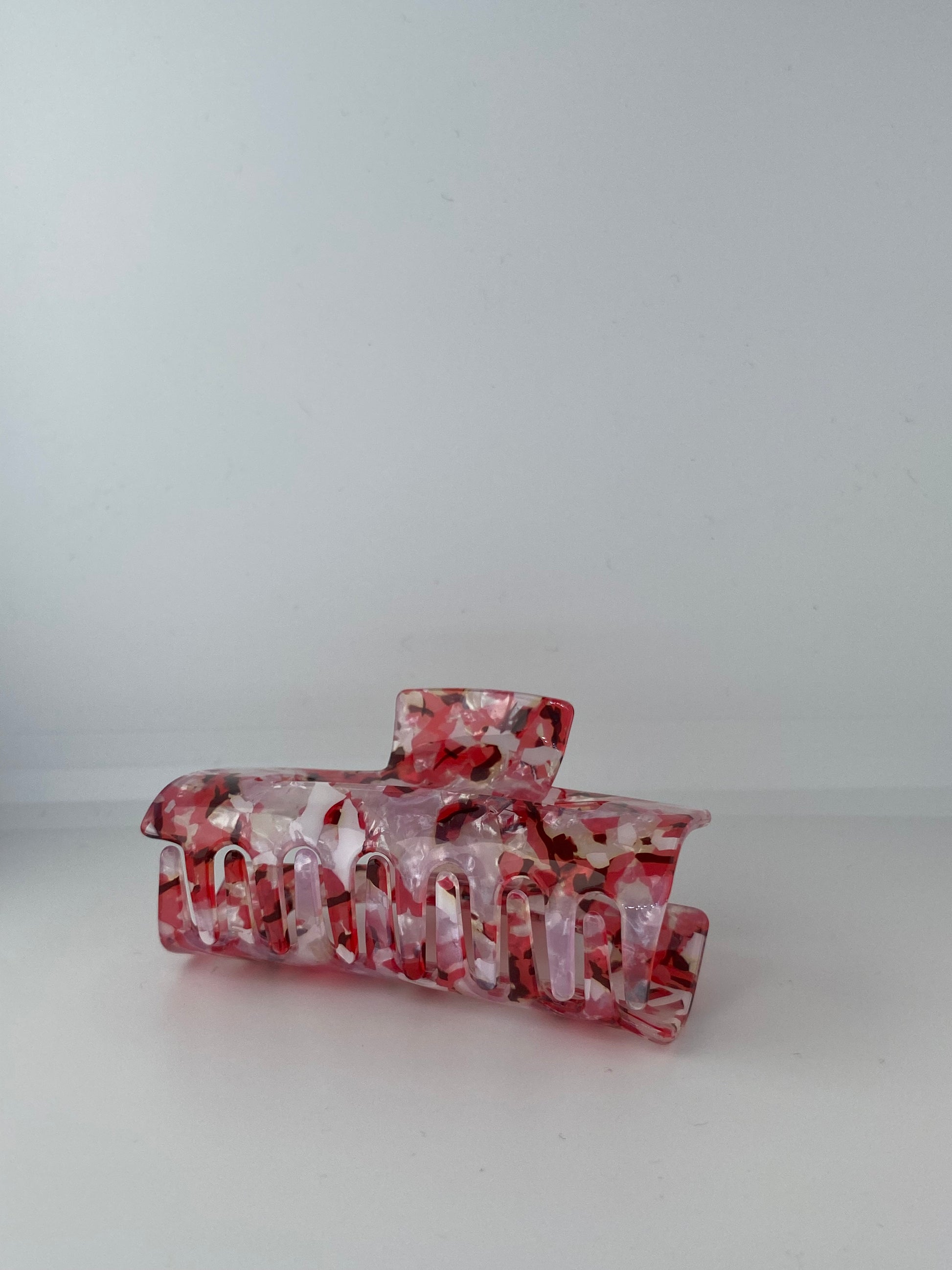 Diese französische Haarklammer HAVA hat die perfekte Größe für alle Haartypen und Frisuren. Sie hält die Haare fest zusammen und mit ihr lassen sich alle möglichen Haarstyles zaubern. Die Klammer ist mehrfarbig, hat die Farben rot, rosa sowie weiß und schimmert leicht im Licht.