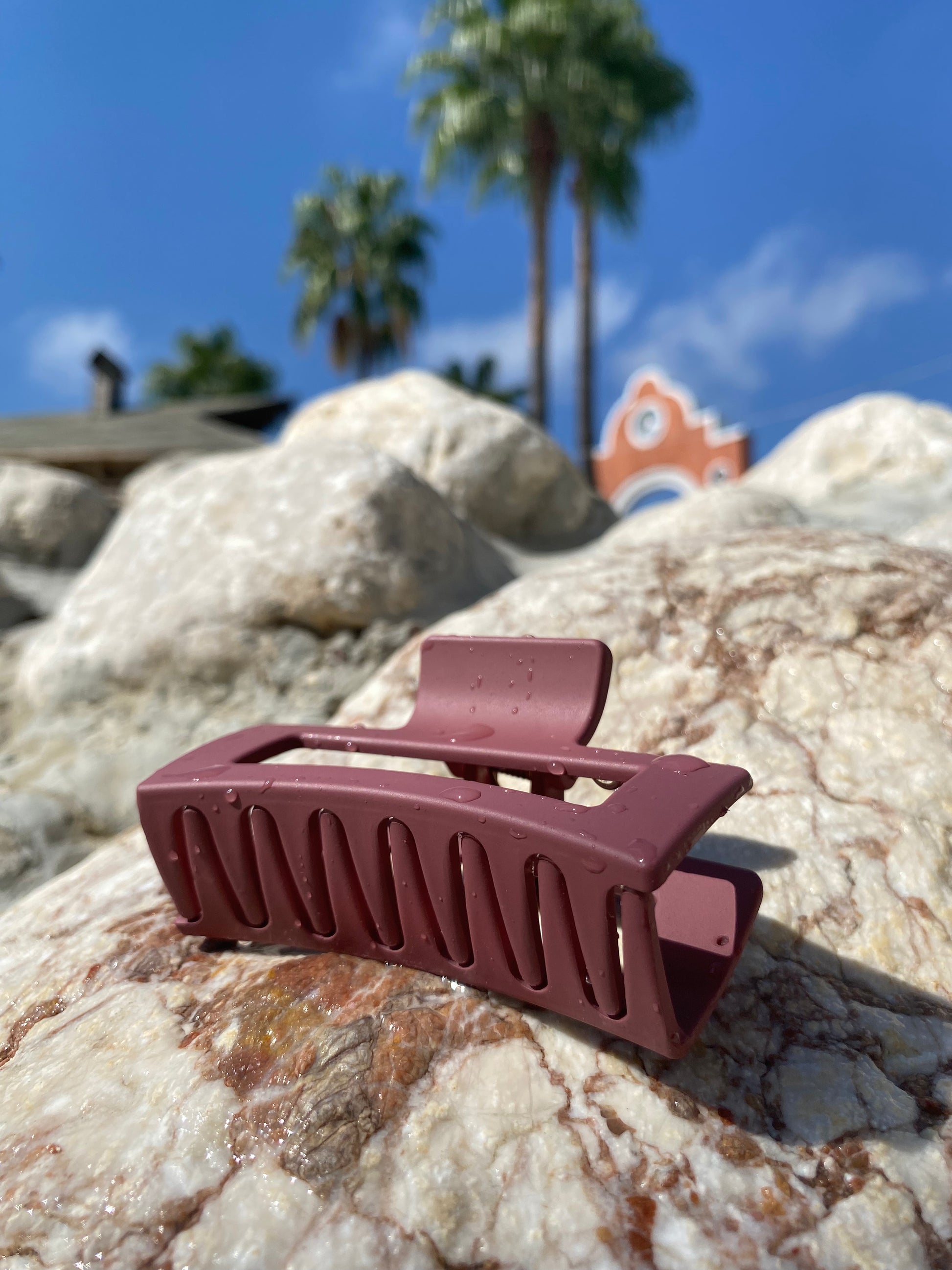 Die Haarklammer BRITA - hat eine schöne bordeauxrote Farbe und hat eine matte Oberfläche. Die Haarklammer ist rechteckig und besonders gut lässt sich die Haarklammer mit schlichten Outfits kombinieren.